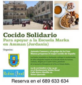 • El precio del menú se destinará íntegramente a mantener un proyecto educativo de emergencia, de Mensajeros de la Paz en Amman.
